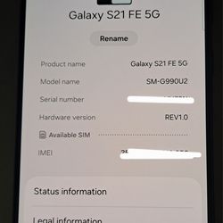 Samsung S21 Fe 5G$240Indianapolis, IN