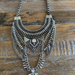 Antique silver tone statement necklace with rhinestones$50Carmel, IN