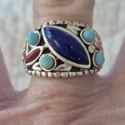 Vtg.CFJ STERLING SILVER LAPIS,TURQUOISE, CORAL RING- SZ8$63Zionsville, IN