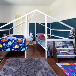 Euroco Wood House Twin Bed, 2 Beds in One, 2-in-1 Platform Bed with Movable Desk for Kids Teens, White$110Shelbyville, IN
