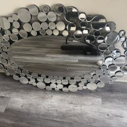 Beautiful “pewter looking” filigree mirrored tray..14” long and 10” wide$10Schererville, IN