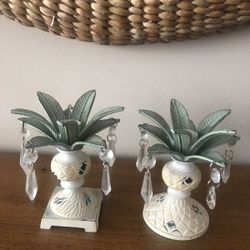 SET OF 2 NAUTICAL TROPICAL PALM LEAF WHITE WASHED BRONZE 5” CANDLE HOLDERS WITH HANGING PRISMS$10Indianapolis, IN