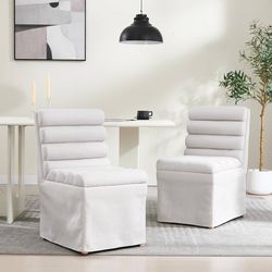 Dining Chairs Set of 2, Upholstered Linen Fabric Kitchen Side Chairs with Cylindrical Cushion/Skirted Base/Wood Legs, Modern Slipcovered Accent Wooden$199Indianapolis, IN