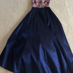 Womens Royal Blue Pink Floral Embroidered Gown Size Medium Prom And Evening $30Niles, MI