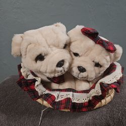 Vintage Plush Puppy Couple in Basket with Tartan Trim$15Elkhart, IN