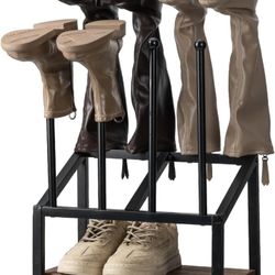 Industrial Metal & Burnt Wood 4-Pair Boot Rack with Shoe Shelf - Freestanding Rustic Entryway Organizer, Non-Slip Floor Protector for Mudroom/Garage/C$40Oak Lawn, IL