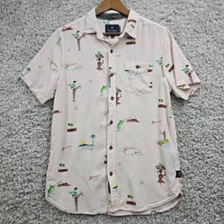 Roark Revival Jamaica Shirt Men M Pink Tropical Short Sleeve Button Up Vacation