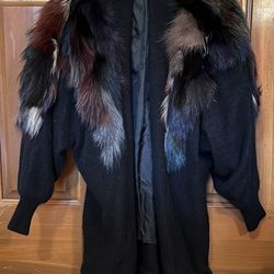 Gorgeous Black Angora and nylon blend La Mittini cardigan sweater multicolor fur trim.$75Indianapolis, IN