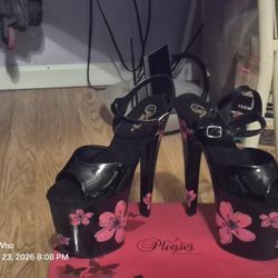 Hot Pink Glitter And Black High Heel Pleasers Size 7$50Indianapolis, IN