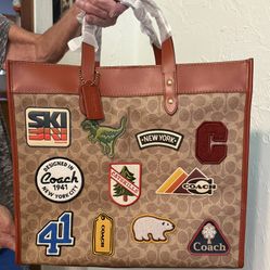 Coach Field Tote in Signature Canvas with Patches.$500Wichita, KS