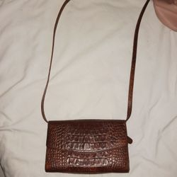 Vintage Brown CROCODILE-EMBOSSED Leather Crossbody Wallet Purse$30Hadley, KY