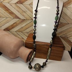 #12, ANTIQUE ART NOUVEOU, NECKLACE, NATURAL GEMS, HAND CRAFTED SCROLLED CYLINDER$159Florence, KY