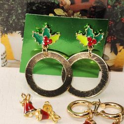 #1970 LOT VTG CHRISTMAS EARRINGS, GOLD TONE