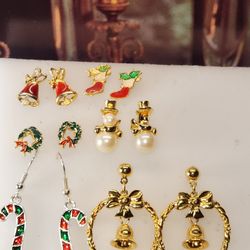 #1971 LOT VTG CHRISTMAS EARRINGS, GOLD TONE 6 PAIRS