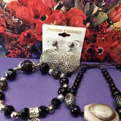 #1954, LOT VTG JEWELRY, BRACELETS, NEW EARRINGS, & CHOQUER
