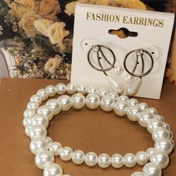 #1949, LOT PEARLS COLLECTION, 2 STRETCH BRACELETS & EARRINGS