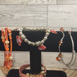 #1536 LOT OF VINTAGE BRACELETS, SILVER ,ORANGE RED, TONE