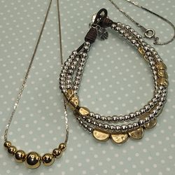 #1523 BEAUTIFUL SET NECKLACE AND BRACELET SILVER & GOLD TONE