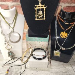 LOT OF VINTAGE COLLECTION, NECKLACE, EARRINGS BRACELET