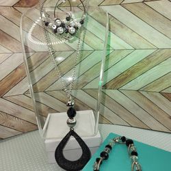 LOT OF BLACK & SILVER COLLECTION, 5 ITEMS