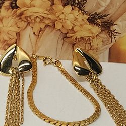 #1575, TRIFARI SET OF BRACELET AND EARRIINGS GOLD TONE. GREAT CONDiTION