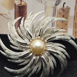Vintage Sarah Coventry pearl Brooch 3"INCHES LONG, Very elegant and in excellent condition, Silver tone. #1083