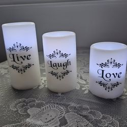 $15.00 - (3) LED Wax Candles, "LIVE, LAUGH, LOVE" Motivational Words! Like New Condition/Includes Batteries!$15Morrow, OH