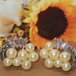 10K GP WHITE GOLD SET, PEARLS AND RHINESTONES EARRINGS