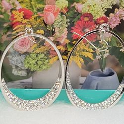 GORGEOUS HOOPS, 2"INCHES LONG WITH CUBIC ZIRCONIA STONES, 10K WHITE GOLD PLATED, BEAUTIFUL VINTAGE EARRINGS, NEW WITH OUT TAG, #1160