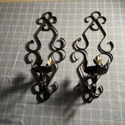 Set of two black metal wall candle holders with intricate design.$20Cincinnati, OH