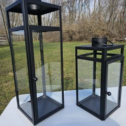 $60.00 - (2) Farmhouse/Modern Decorative Metal & Glass Lanterns! 27" & 19" Height Hanged! Interior/Exterior Accents! $60Morrow, OH