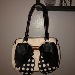Betsey Johnson Cream And Black Big Bows Purse W/Gold Accents $14Florence, KY