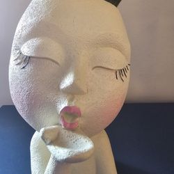 $25.00 - "Air Kiss" Whimsical Face Head Planter With Faux Plant! New In Box! Lowest Price!$25Morrow, OH