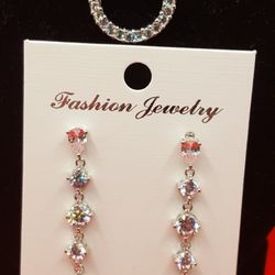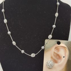 Antique Crystal set of two Items. Earrings and Necklaces, Silver Tone,