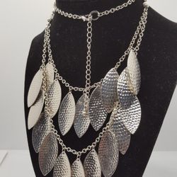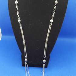 Loft Jeweled statement Necklace, Silver color, 36"inches long, very unique style, Beaded necklace.
