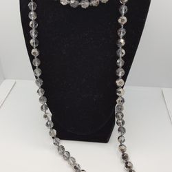 Antique Crystal set of two Items. Earrings 2"in and Necklaces 16"in, Silver Tone,