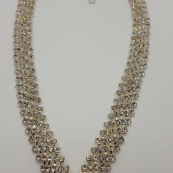 Boho Rhinestone Necklace, Unique vintage Style, Silver Tone, new with out tag