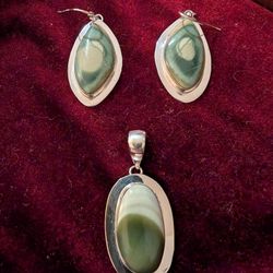One Of A Kind Roz Menton Green Agate Earring And Pendent Set$225Cincinnati, OH
