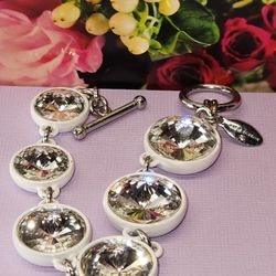 #1922, GORGEOUS RHINESTONES VTG SET, SILVER PLATED, BRACELET & NECKLACE