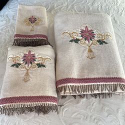 Towel 3-piece set with floral embroidery & beaded fringe details (perfect condition!)$15Lexington, KY