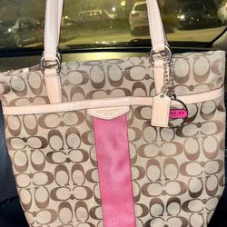 Coach Signature Stripe File Bag Crossbody Messenger Tan Pink F28502$75New Albany, IN