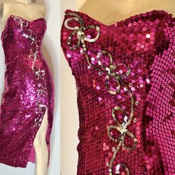 Vtg 80s Sequin Fuchsia Sweetheart Evening Formal Gown, 2$104Paris, KY