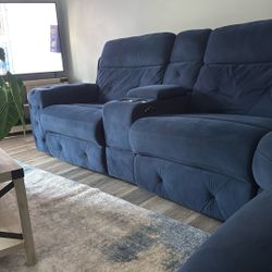 Blue/ Grey Double recliner couch$150Strathmr Mnr, KY