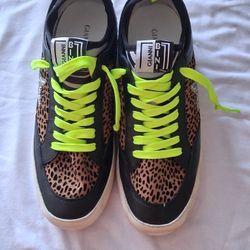 Gianni Bini Women’s Leopard Print Sneakers Size 7.5 Neon Green Laces Trendy Shoes$25Lafayette, LA