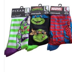 Kids Character Crew Socks Bundle (Pixar, TMNT, Marvel) Size 9-13$15Lafayette, LA