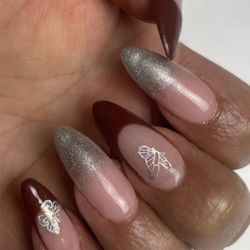 Medium almond brown gray press on nails French tips glitter butterflies handmade$35Beaumont, TX