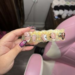 Long stiletto press on nails pink white French tips ombre gold flowers red nude$40Beaumont, TX