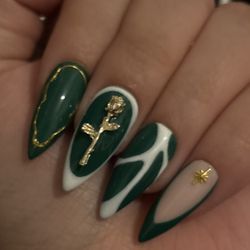 Medium stiletto press on nails green french tips gold rose white handmade custom$40Beaumont, TX