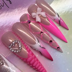 3XL stiletto press on nails rhinestones pink bow French tips white ombré silver$45Beaumont, TX