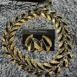 Butler Fifth Avenue Collection Vintage Black Enamel and Gold-Tone Leaf Motif Choker Necklace and Earring Set$5Metairie, LA